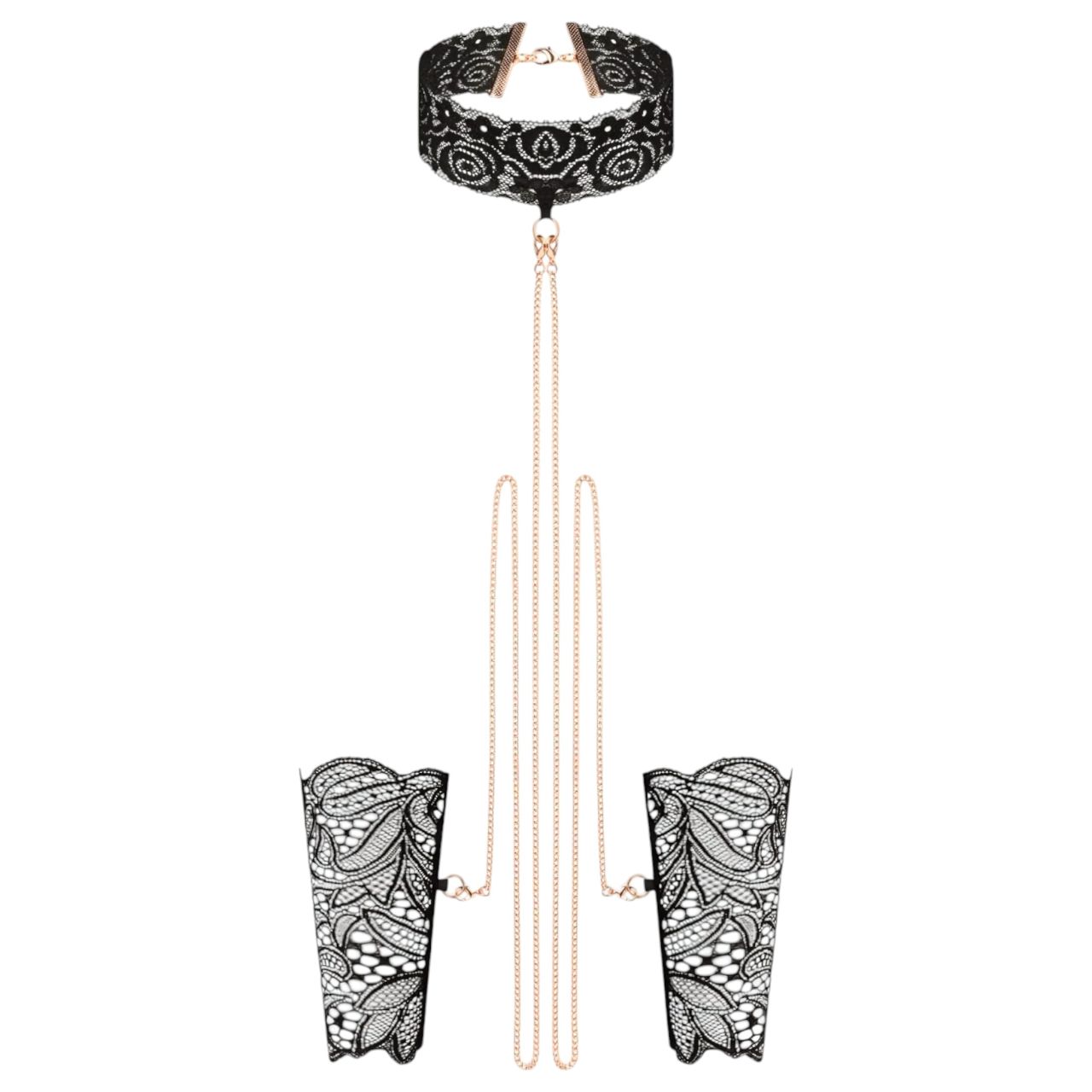 Rosy Gold - nyakörv és csukló bilincs (fekete)