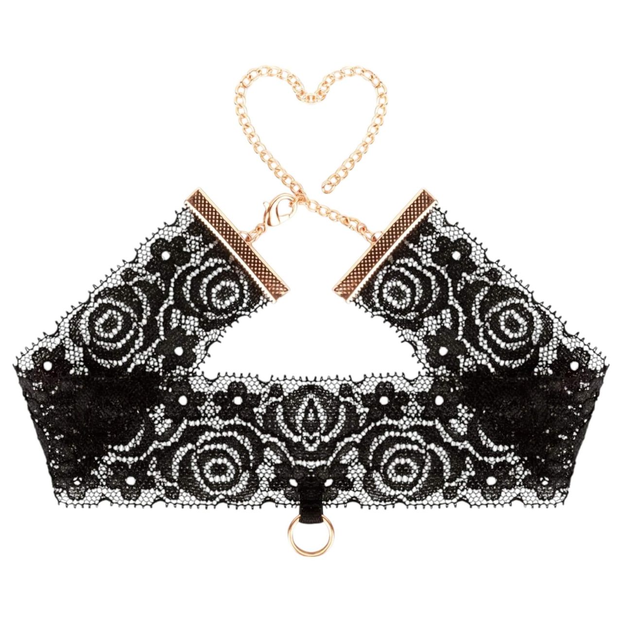 Szín: fekete csipke aranyszínű láncokkal.
